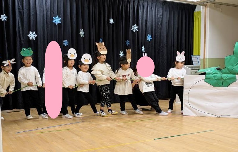 くすのき組(4歳児)はオペレッタ『てぶくろ』合奏『ドラえもん』