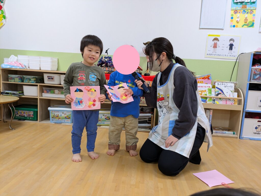 お友達が作った製作を見たり、紙芝居や歌でもひなまつりを感じました💕