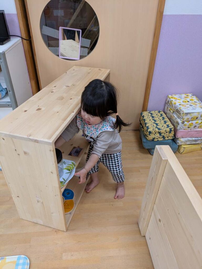 写真の場所に使った玩具を片付けることも練習中です♪