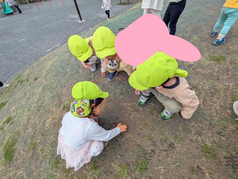 アリの巣を見つけました!1か所だけではなく色々な場所にアリの巣を見つけて「こっちにもある!」とお友達を呼んでたくさん観察しました🐜