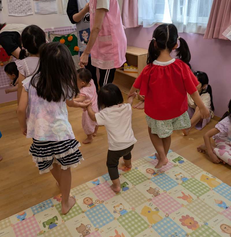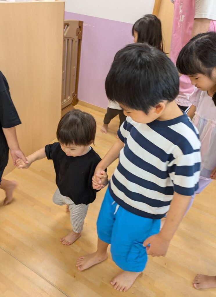 まずは『さんぽ』の音楽に合わせて手を繋いで歩きます🚶