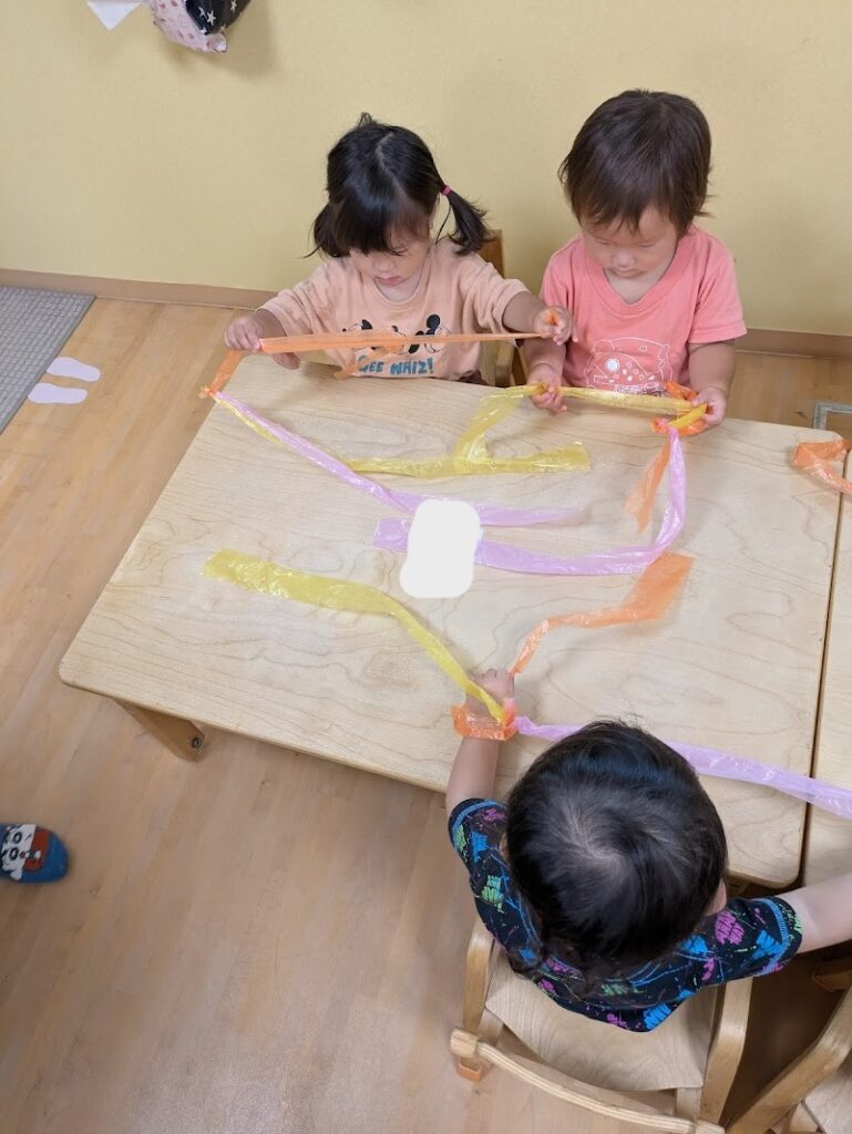 スズランテープを小さくさいたりしながら、楽しそうに製作していました⭐