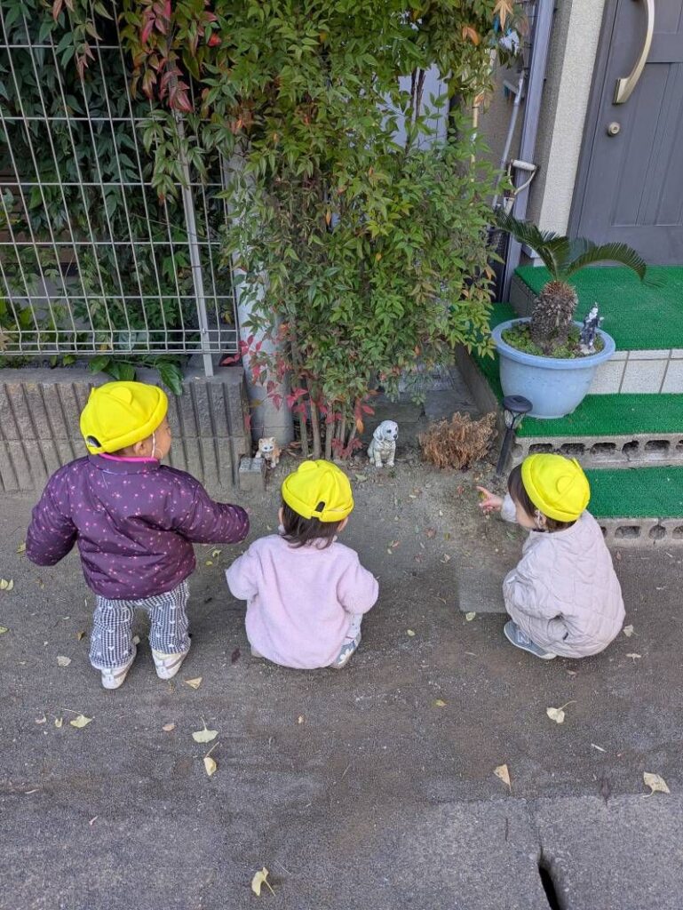 この日は、置物の猫と犬を見つけて「わんわん!」「にゃんにゃん!」と喜んでいました。