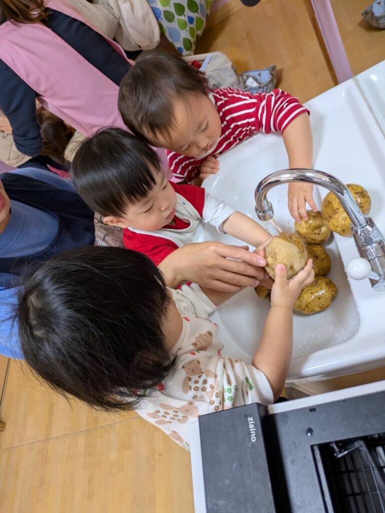 最初は、触る事を躊躇っている様子もありましたが「このまん丸のがポテトとかになるんだよ」と