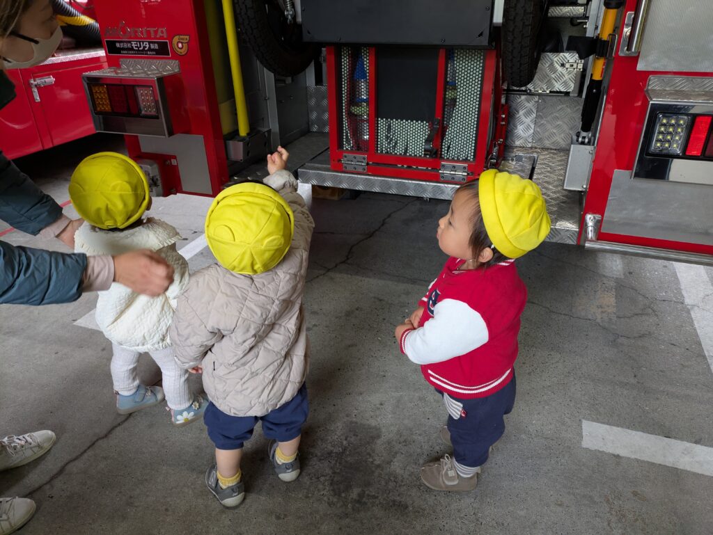 相変わらず消防車に興味津々で沢山触らせてもらったり、乗せてもらいました。前回よりもよく見るようになっていたり、消防士さんに積極的に近づいて行ったりしていましたよ😌