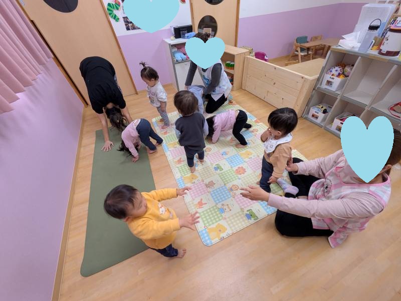 ベビーヨガは、保育者が補助をしなくても出来るポーズが増えてきています😆