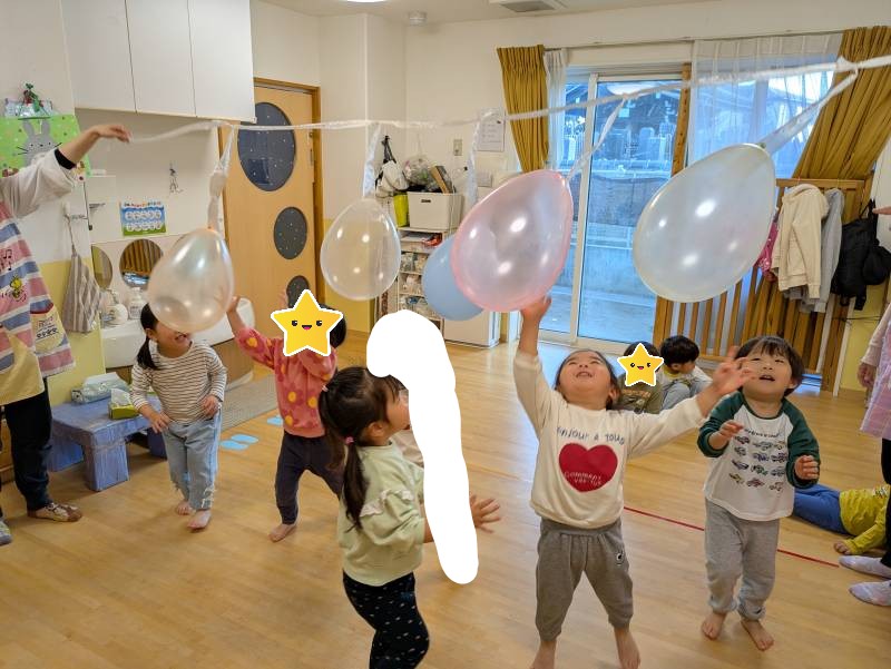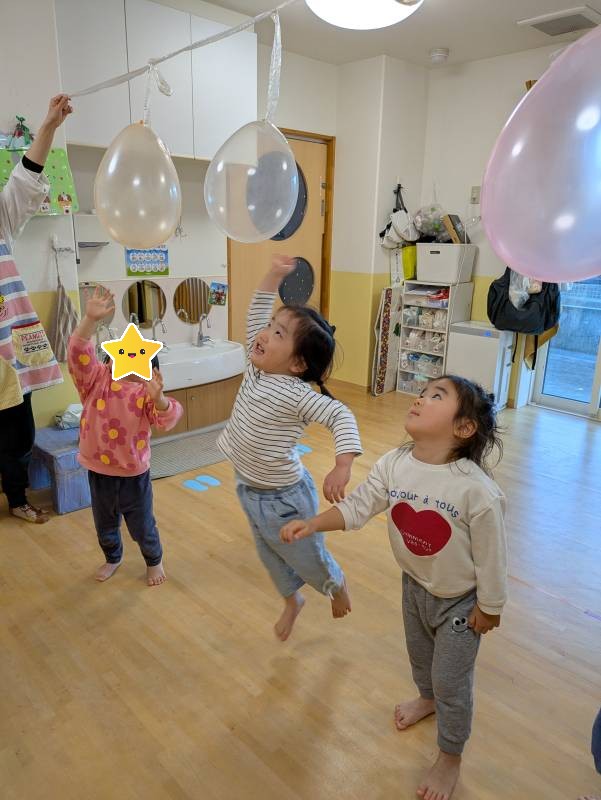 高い時にはジャンプしてタッチしようと頑張っていた子どもたちでした💗