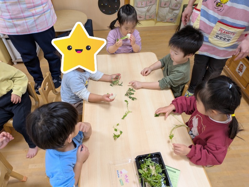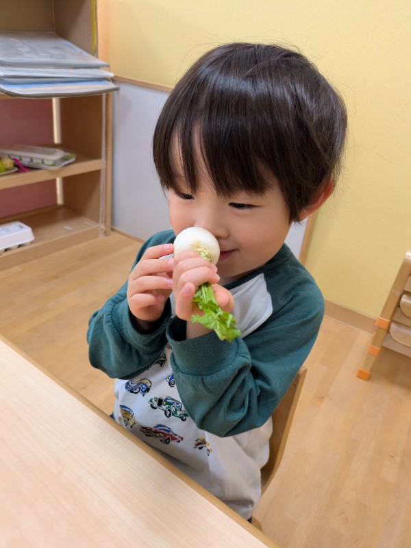 すずな、すずしろを「これ大根?カブみたいだね~」とお友達とお話していました🤭