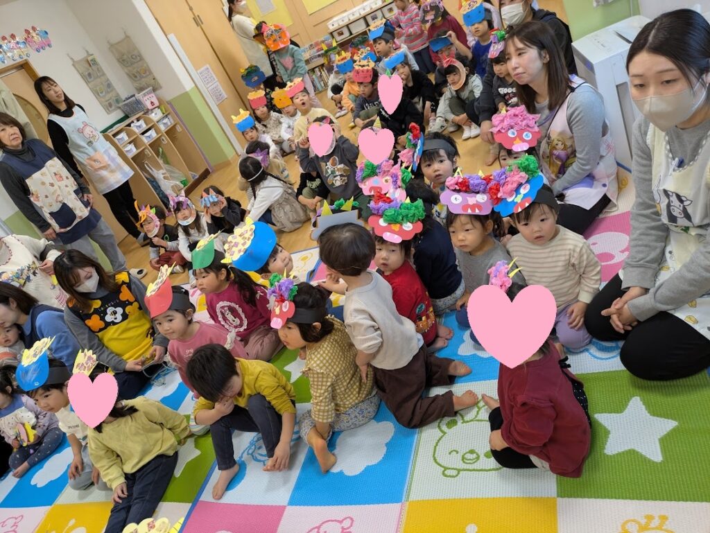 各クラス、作った鬼のお面をつけて集合しました🥰