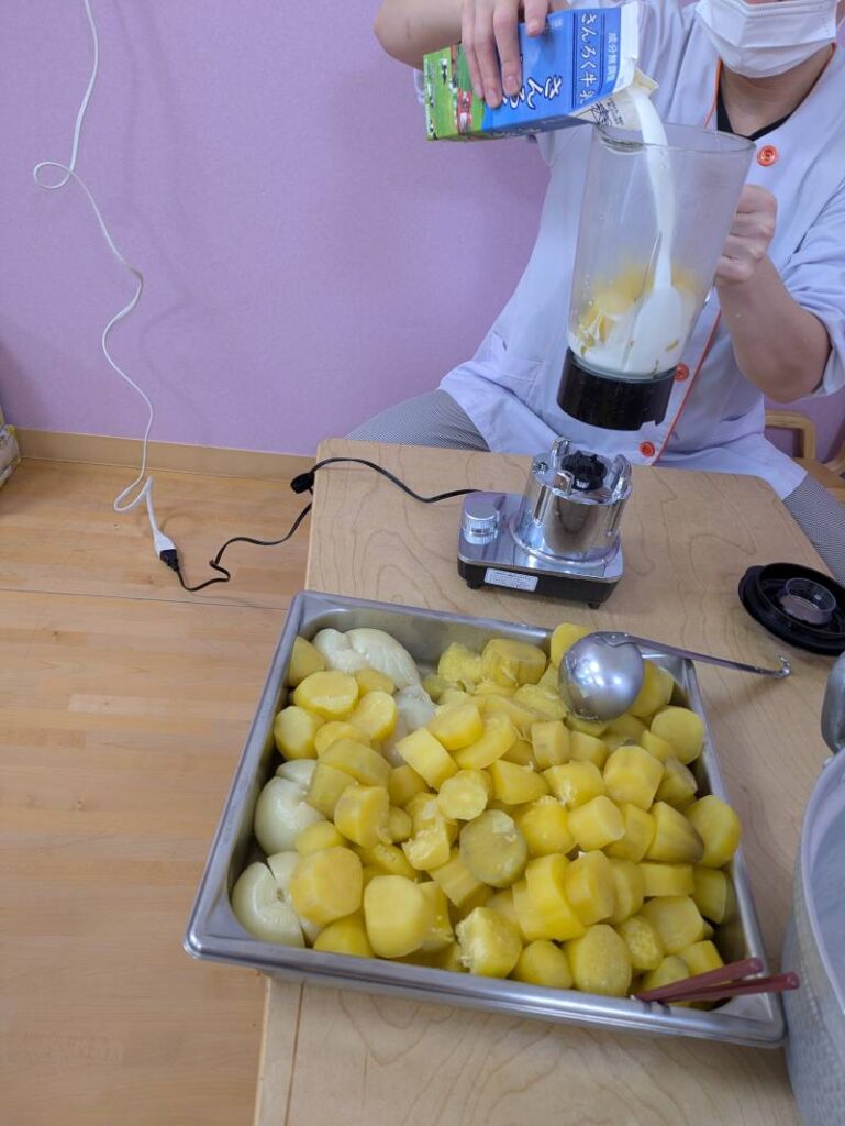 最初は固形だったお芋、ミキサーに入れるとどろどろと液状になるなど変化もみんなでじっくりと見られました。