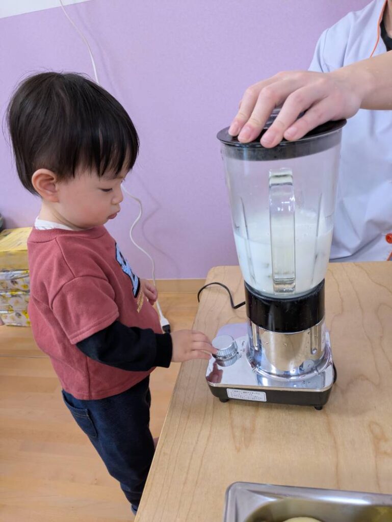 ミキサーをどんなものかまだ知らないからか、出てきて少しびっくりしてしまう子も。
