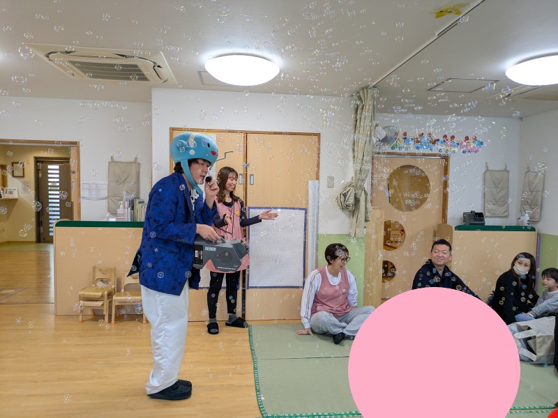 様々な大きさのしゃぼん玉に子どもたちも大興奮でしゃぼん玉に手を伸ばしていました🫧