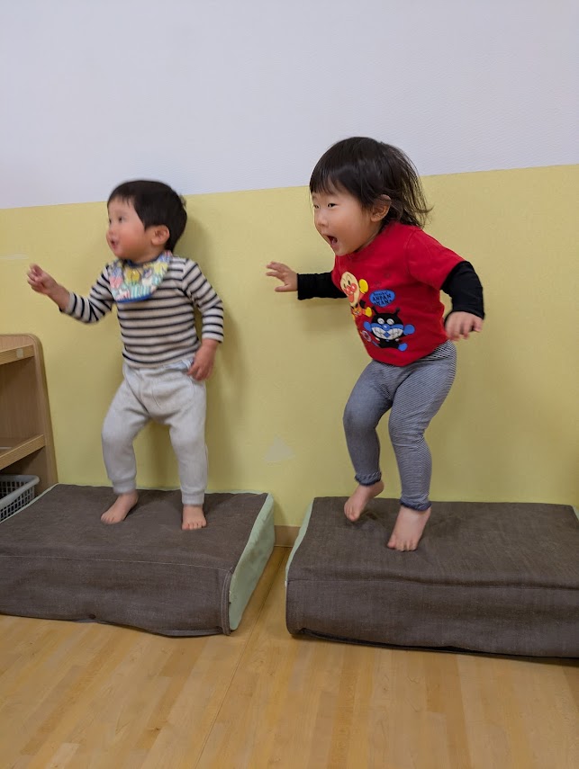 トランポリンは「おっとっと~」とバランスを崩すのも楽しく、お友達と顔を見ながら笑い合っていました😁