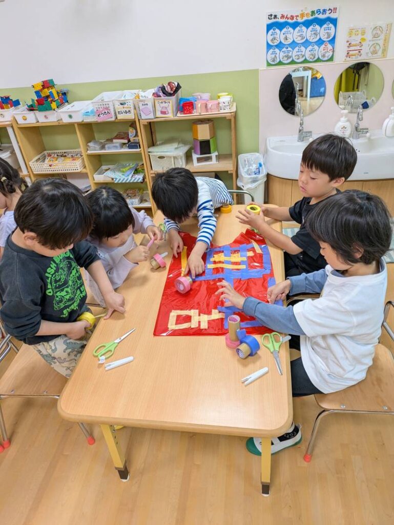 テープを切って貼るだけにはなりますが、話し合ったり、個々に進めたりとグループごとで様子は違いました😌